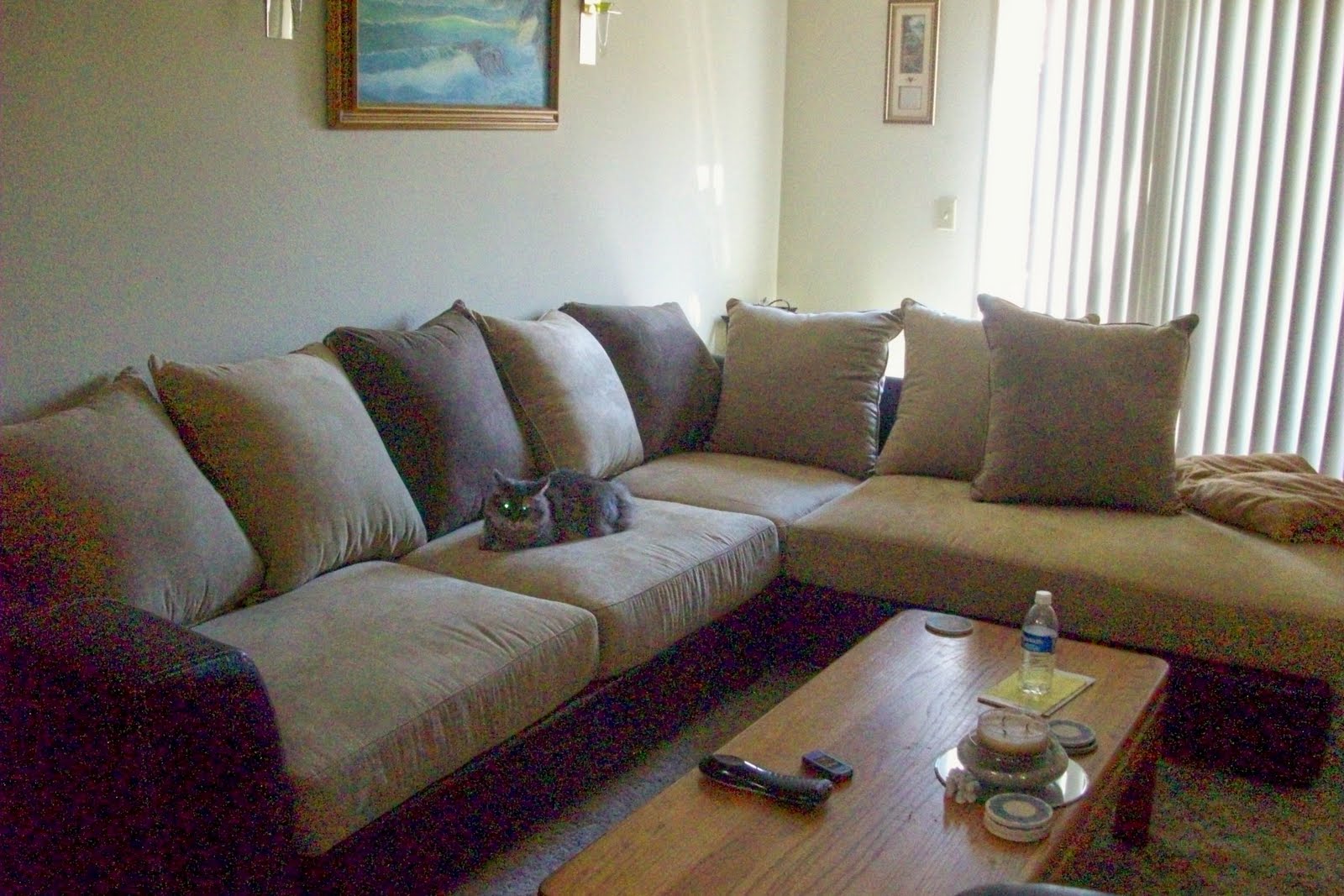 I got a beautiful elegant comfortable new couch yesterday. My husband oversees operations & such at an apartment complex in El Cajon. The complex had a model unit until yesterday when they had to get it ready for a new renter. Hubby & his boss were talking about it, and his boss offered to give us the couch that was in the model unit. For free!!! A $700 couch for free!! Check it out: